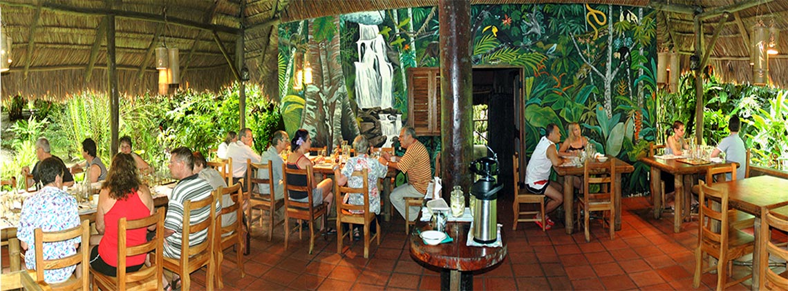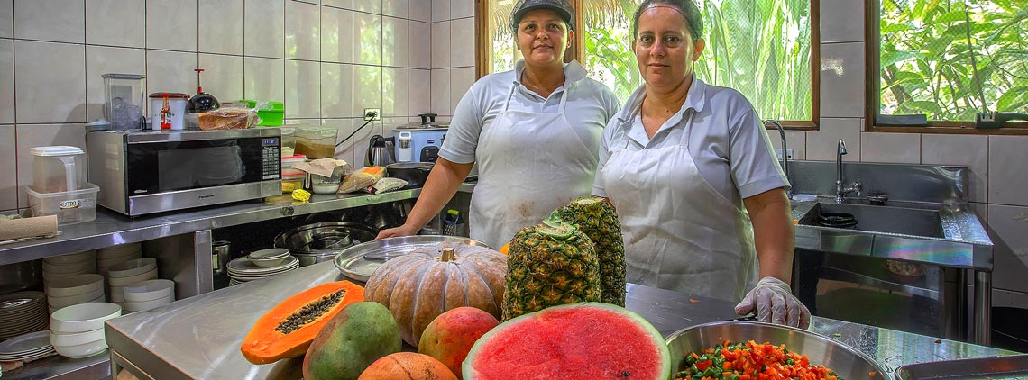 La cocina tica no sólo consiste en arroz y frijoles, pescado frito y plátanos. Nuestro menú se basa en la gastronomía moderna costarricense así como recetas típicas entregadas de generación a generación... Utilizamos frutas y verduras cultivadas localmente y productos naturales como pescado recién capturado artesanalmente en el Golfo Dulce. En muchas recetas, utilizamos productos típicos que nuestros huéspedes probablemente rara vez o nunca habían probado antes.